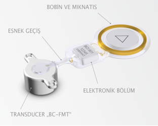 Kemik iletimli implantlar (Bonebridge), koklear implantlar ve bazı orta kulak implantlarında kullanılan transkütanöz (deri üzerinden) teknolojinin kemik iletimi uyarımı için de uygulanabildiği modern bir çözümdür. Titreşim üreten aktarıcıya sahip implant, deri altına yerleştirilir (Şekil 1). Bu sistem, dış ve orta kulağı kullanmadan iç kulağı doğrudan uyarır.