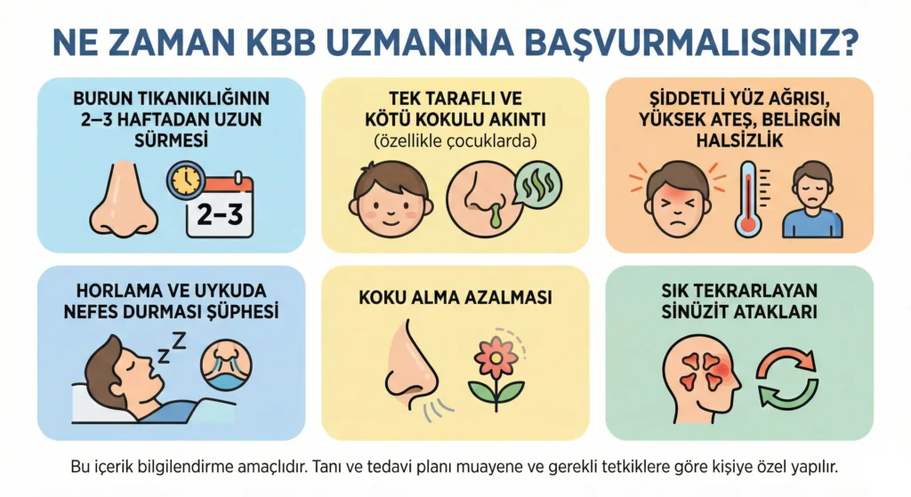 - Alerjiye bağlıysa: alerji kontrolü + burun spreyleri/antihistaminikler