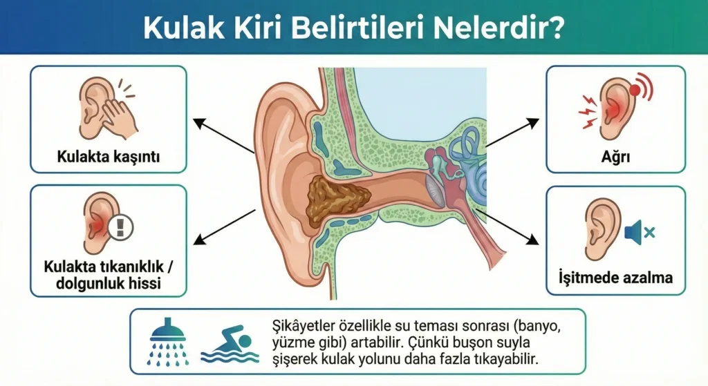 Bu durumlarda kulak kiri dış kulak yolunu tıkayarak şikâyetlere yol açabilir.